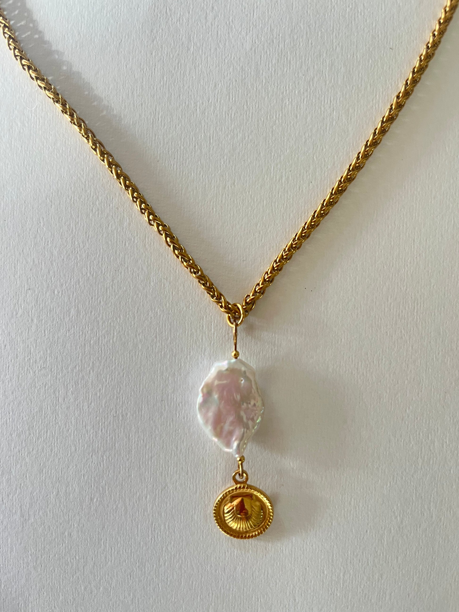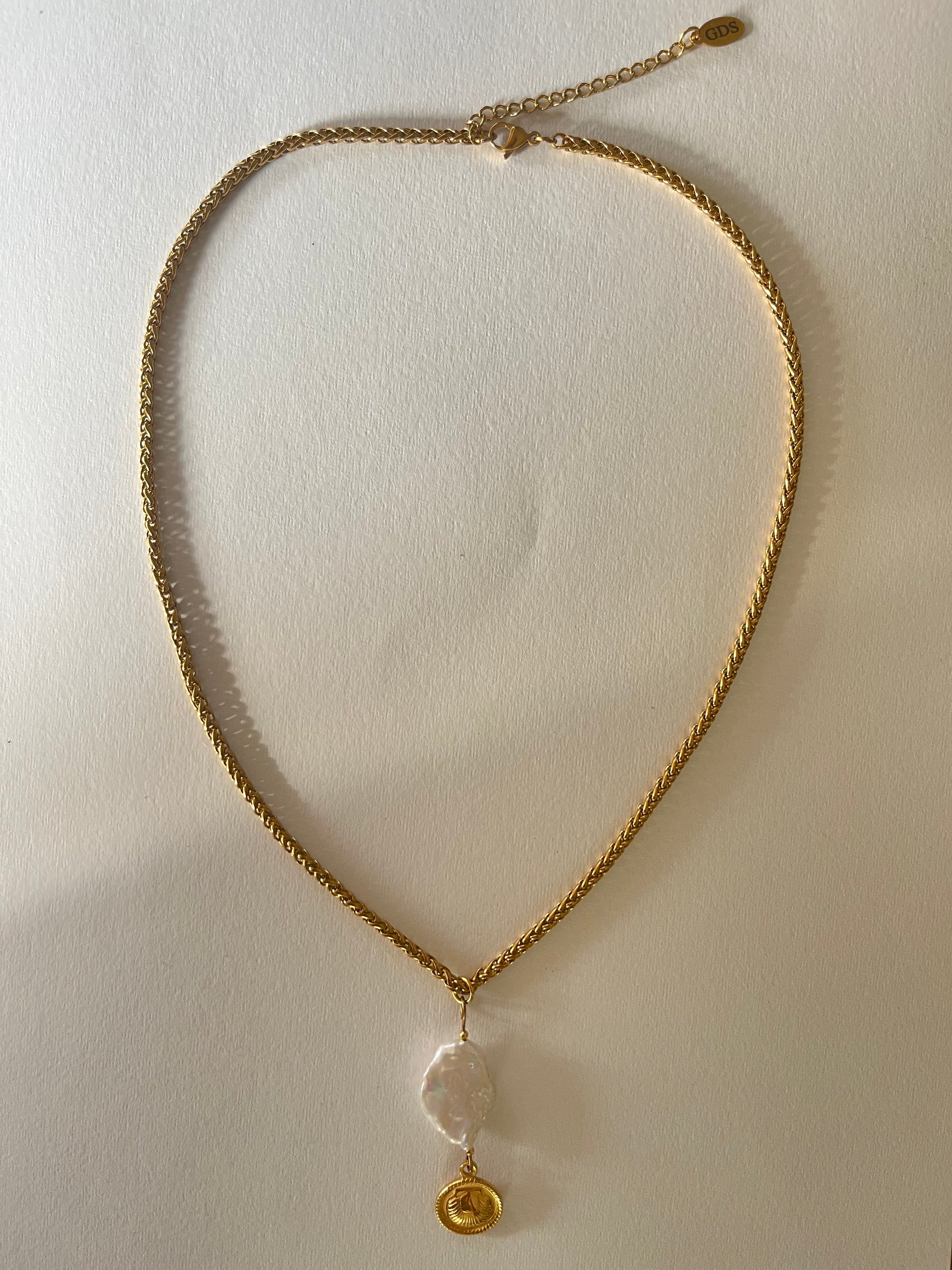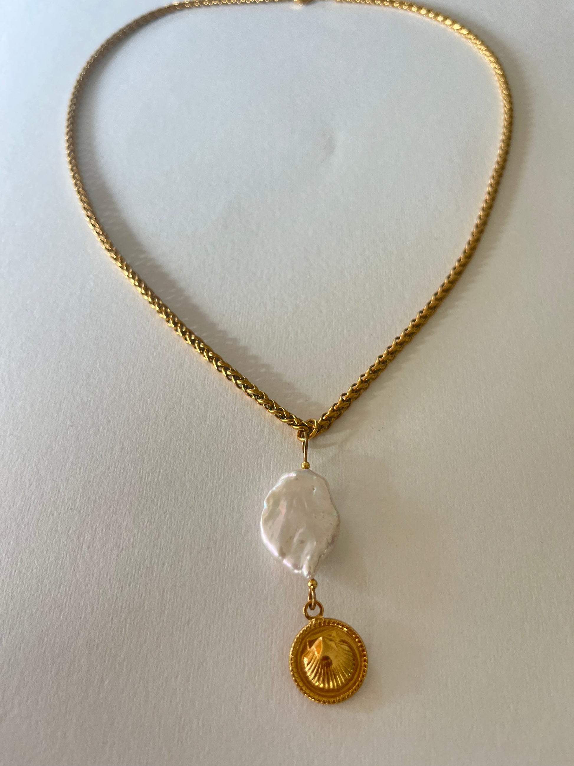 - Pendentif acier inoxydable et Perle d'eau douce 50x15mm